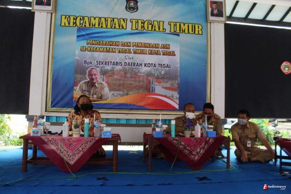 TEGAL-Aparatur Sipil Negara (ASN) di Wilayah Kecamatan Tegal Timur mengikuti pembinaan di Pendopo Kecamatan, Senin (8/3).