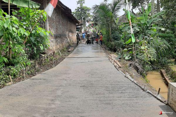 Satgas TMMD bahu membahu, bergotong royong menuntaskan pengecoran jalan di Desa Ketapang, Senin 8/3/21.