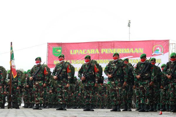 JAYAPURA- Bertempat di Satrol X Lantamal X Jayapura Upacara penerimaan Satgas PAMTAS RI - PNG kali ini agak berbeda dengan tahun lalu, dikarenakan saat ini Wilayah Jayapura masih berstatus siaga Covid 19, oleh karena itu Kolakops Korem 172/PWY bekerja sama dengan tim gugus tugas pencegahan penyebaran Covid 19 Kota Jayapura, Provinsi Papua bersama dinas terkait menjadi harda terdepan dalam menyambut kedatangan Satgas Pamtas RI - PNG Yonif 403/WP dengan melakukan pemeriksaan dan sterilisasi saat personel maupun materiil yang akan di turun kan dari KRI Tanjung Kambani.Selasa, (9/3/2021).