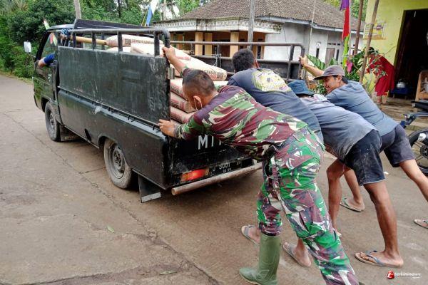 Kopda Muhamad Anggita ( 32 ) Satgas TMMD Regular ke 110 Kodim 0714/Salatiga di Desa Ketapang, saat hendak istirahat siang melihat mobil dengan muatan kayu mogok langsung menghampiri, dan mendorongnya. Semua merupakan bentuk dedikasi TNI kepada siapa saja yang membutuhkan pertolongan, Rabu 10/3/21.
