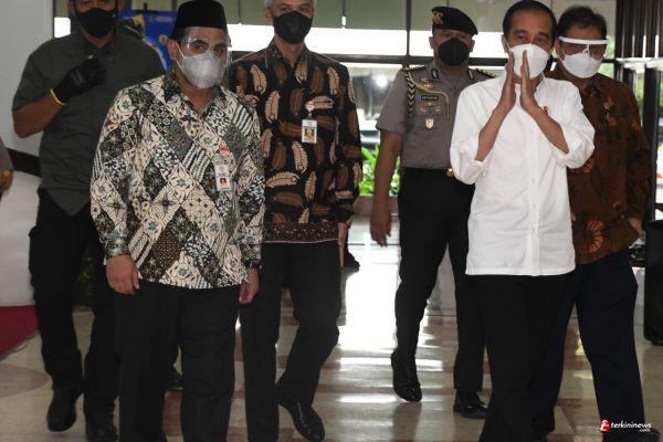 Presiden Jokowi juga meninjau pelaksanaan vaksinasi massal tahap kedua bagi petugas pelayan publik Provinsi Jawa Tengah di Gedung Gradhika Bhakti Praja, Komplek Kantor Gubernur Jawa Tengah Jln. Pahlawan No.9 Mugasari Semarang.