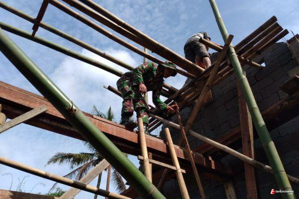Kopda Ali bersama personil TNI yang dibantu masyarakat dengan penuh semangat, melaksanakan Rehab RTLH milik Baedowi (64 tahun) warga Dusun Ketapang RT 04/01 Desa Ketapang.