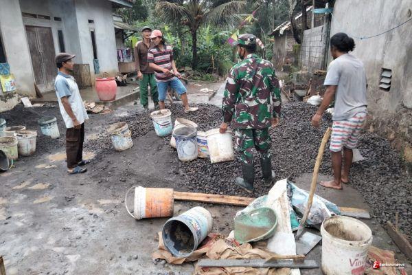 Satuan Tugas (Satgas) TNI Manunggal Membangun Desa (TMMD) Kodim 0714/Salatiga Reguler ke-110 tahun 2021, di Desa Ketapang Kecamatan Susukan Kabupaten Semarang, terus bersemangat untuk merampungkan pembangunan jalan rabat beton, Rabu 10/3/21.