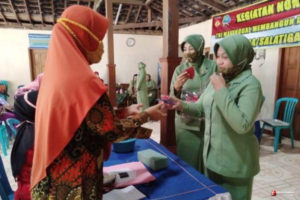Bagi-bagi Masker Gratis Hasil Karya Ibu-ibu Persit KCK Kodim 0714 Salatiga