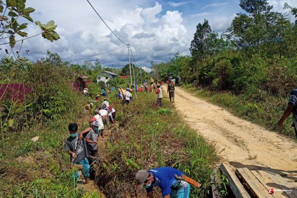 Didik Riyono' Kodinator Lapangan dalam kegiatan Program Tmmd 110 Kodim 1206/Psb sasaran fisik dengan sasaran berbeda mengajak warga masyarakat" Bersatu Kita Kuat"untuk melaksanakan kerja bakti pembersihan parit aliran sungai yang menjadi kendala bagi masyarakat setempat karna selalu tergenang air di musim penghujan