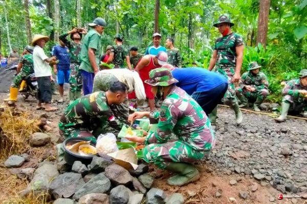 " Makan bersama merupakan bentuk keharmonisan, kebersamaan dan kekompakan TNI dengan warga masyarakat dalam mengisi aktivitas sehari-sehari di lokasi sasaran program TMMD Reg 110