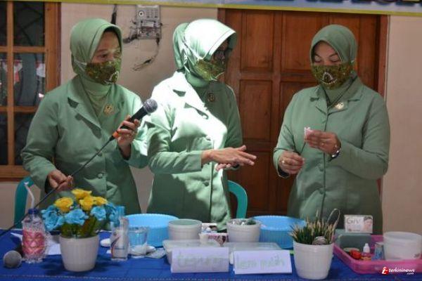 SALATIGA - Tangan Terampil Persit Kartika Candra kirana Cabang XXXV Dim 0714/Salatiga, Korem 073 Makutarama DAM lV Diponegoro Merubah Sabun Menjadi Bunga