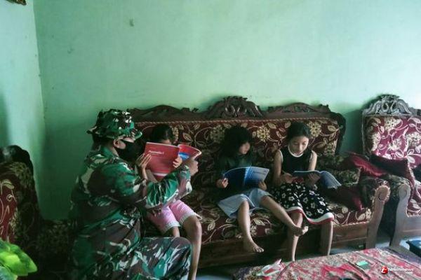 Dari pada belajar sendirian , adapun pengakuan orang tuanya, Via susah sekali kalau di suruh belajar, tapi kalau ada bapak TNI dia kelihatan semangat maunya belajar terus padahal saya tidak enak kalau menganggu waktu istirahat bapak - bapak TNI ”, ungkap Dwi ibu dari Via.