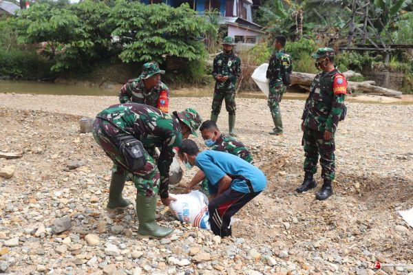 Semangat tak kenal lelah dan penuh perjuangan di tunjukkan personel Satgas TNI Manunggal Membangun Desa (TMMD) 110 Kodim 1206/PSB, untuk mewujudkan impian masyarakat di Dusun Tintin Kemantan, Desa Hulu Pengkadan, Kecamatan Pengkadan, Kabupaten Kapuas Hulu, Provinsi Kalimantan Barat. Selasa, (09/03/2021)