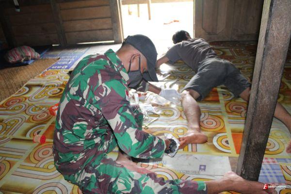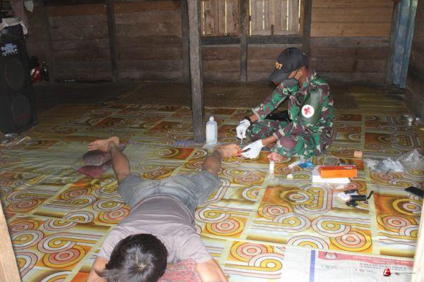 Danpos Sei Tekam Serka M. Kharis Amrulloh menyampaikan Pengobatan tersebut bermula ketika anggota Pos Sei Tekam akan melaksanakan anjangsana kerumah warga Dusun Sei Amplas. Saat diperjalanan anggota pos berpapasan dengan Bapak Agus (36) warga Kampung Sei Amplas yang hendak pulang dari berkerja memanen buah sawit.