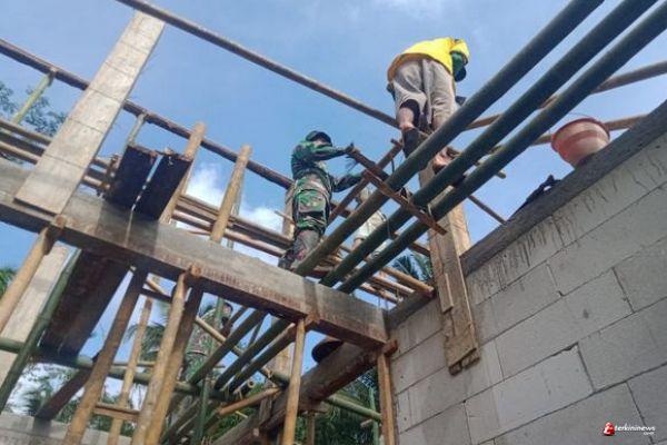 Kabupaten Semarang - Di sela-sela kegiatan rehab Rumah Tidak Layak Huni (RTLH) sebagai sasaran dalam program TMMD Kodim 0714/Salatiga Reguler ke-110 tahun 2021, Serka Dadang, menunjukan kebersamaanya bersama warga.