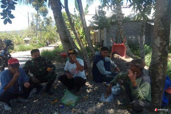 Tampak Serka Slamet(45) berbaur bersama masyarakat sambil bergurau berbagi rasa pengalaman untuk menghilangkan sedikit kelelahan, kelihatan jalinan kekeluargaan yang sudah terbentuk selama ini.