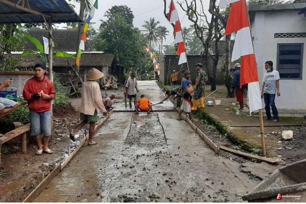 Kabupaten Semarang-Suka cita warga menyambut hadirnya Satgas TMMD Regular ke 110 Kodim 0714/ Salatiga dengan memasang umbul umbul di lokasi TMMD Reg ke - 110 Kodim 0714/ Salatiga.
