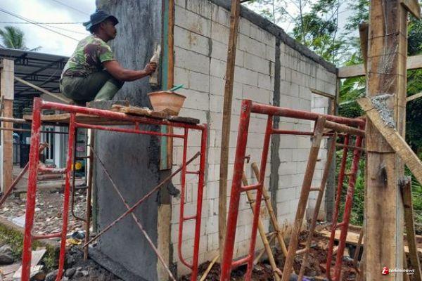 "Kami mengaku salut dengan bapak TNI, hasil kerjaannya tidak kalah dengan tukang profesional. Cara memplester batako sangat mahir. Padahal setiap hari pedangnya senjata," kelakar Marwan