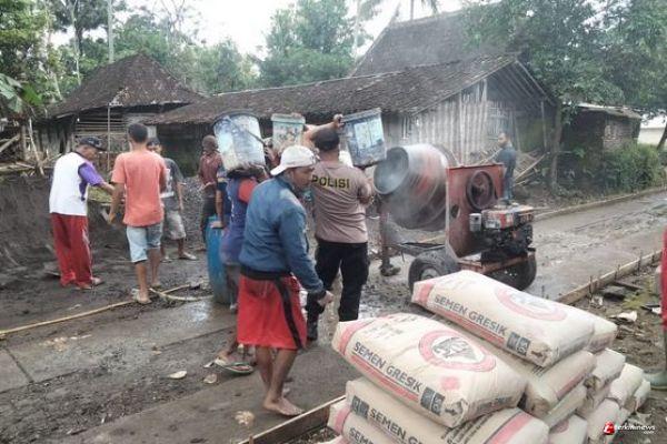 "Pekerjaan hari ini dilaksanakan dengan semangat gotong-royong dari TNI, Polri dan warga", tandas Serma Sutanto