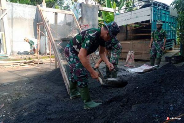 TNI Membantu Mengayak Pasir Untuk Pekerjaan RTLH