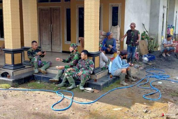 Kabupaten Semarang - Saat rehat sejenak untuk melepas lelah, tak canggung lagi masyarakat Desa Ketapang bersenadau-gurau, bertukar pikiran dan pengalaman dengan Anggota Satgas TMMD Kodim 0714/Salatiga.