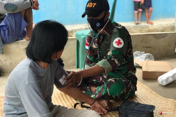 Kepedulian Anggota Satgas Yonif 407/PK Berikan Pelayanan Kesehatan Kepada Warga Perbatasan