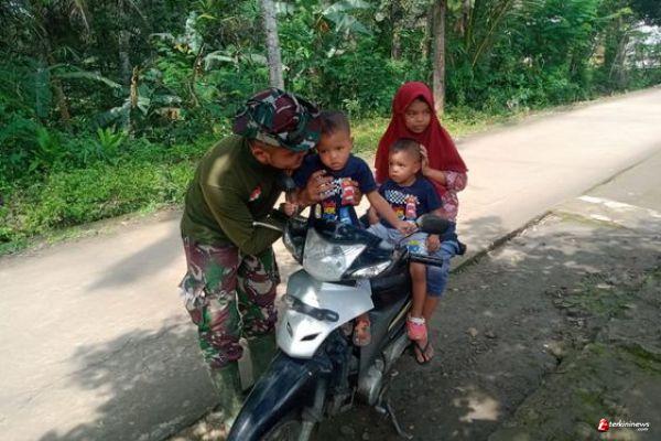 Kabupaten Semarang-Kerinduan Satgas TMMD Regular ke 110 Kodim 0714/Salatiga kepada keluarga dirumah sedikit terobati oleh lucunya anak-anak tinggal disekitar Basecamp TMMD. Melihat tingkah anak anak membuat Sertu Sugeng ingin mengajak jalan-jalan berkeliling kampung.