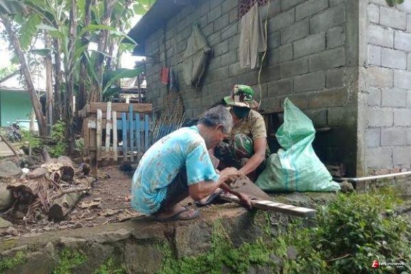 Kabupaten Semarang . Anggota TMMD Sertu Supriyanto disaat istrahat membantu salah satu warga desa ketapang yang membuat kandang ayam.