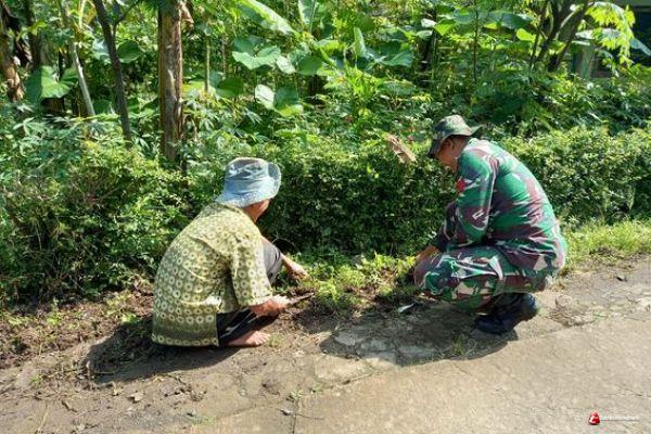 Dengan kepekaannya sebagai prajurit TNI, praka Aris pun langsung menghampiri warga guna membantu membersihkan rumput di pinggir jalan Desa mbah paiman warga Dusun sari mulyo Rt 03 Rw 04 Desa ketapang Kecamatan Susukan.jumat (12/03/21)