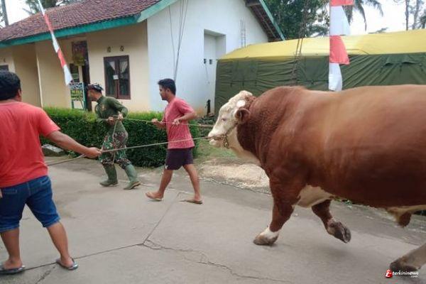 Sertu Sugeng,di sela kegiatan selesai dia sering membantu membawa sapi untuk di masukan ke dalam truk.karena butuh tenaga yg ekstra untuk menarik sapi tersebut.