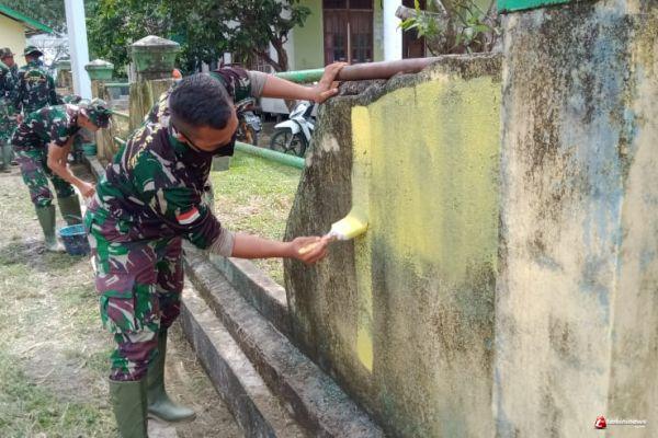 Warga Bersama Satgas TMMD Kodim 1206/PSB Melakukan  Pengecatan Tembok