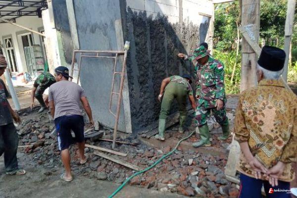 Dengan Niat Ikhlas Anggota TMMD Tanpa Kenal Lelah Melanjutkan Pekerjaan MCK Â Musholla
