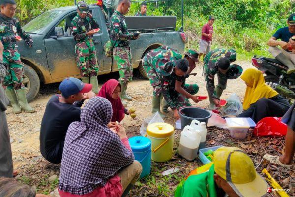 Ibu-ibu Dusun Tintin Kemantan dan warga lainya rutin setiap harinya menyiapkan makanan ringan dan minum dengan ikhlas untuk mendorong semangat Personil Satgas TMMD dalam bekerja dilokasi.