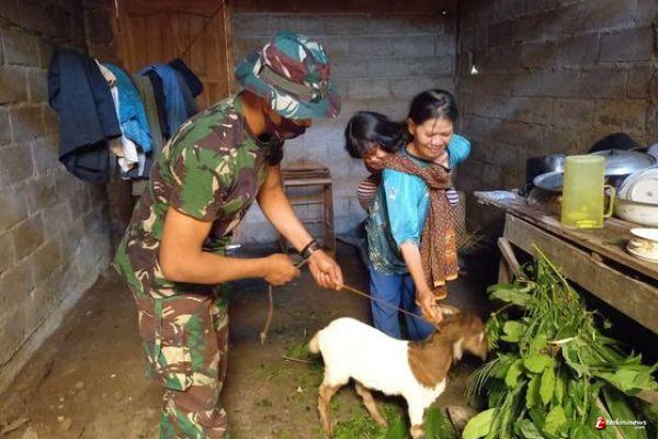 Memberi Makan Kambing Warga di Lokasi TMMD