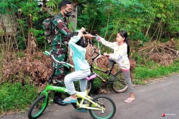 Sertu Rofiudin hanya sedikit berpesan, agar keduanya lain kali saat bersepeda mohon memakai masker untuk menjaga kesehatan.