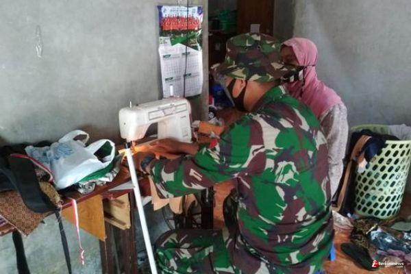Kabupaten Semarang- Selain melaksanakan kegiatan TMMD di Desa Ketapang, Kecamatan Susukan Kabupaten Semarang, Praka Heri meluangkan waktunya untuk berbagi kemahirannya dalam menjahit pakaian kepada Santi (35 tahun) warga Dusun Sarimulyo.
