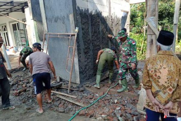 Kopka Agus Anggota TMMD terlihat tengah asyik memainkan alat cetok untuk merapikan pekerjaan tersebut agar MCK Musholla Al'Huda Dusun Sarimulyo Desa Ketapang Kecamatan Susukan cepat terlaksana dengan hasil yang maksimal.