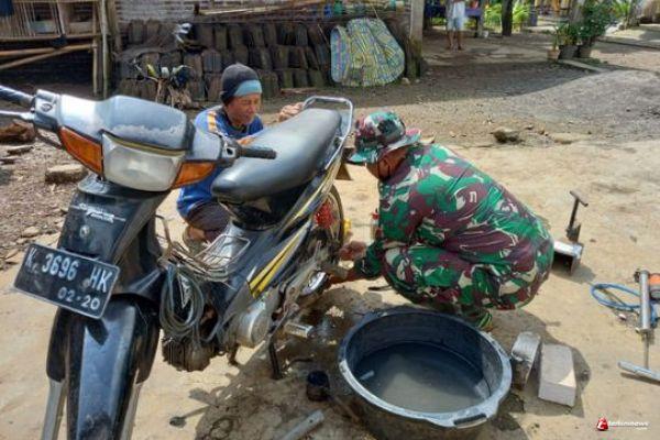 Seperti halnya Koptu Listiyono yang mempunyai keterampilan mekanik untuk motor juga tambal ban. Dengan berbekal keahlian tersebut maka Koptu Listiyono membantu Darno warga Desa Ketapang yang kebetulan mengalami ban bocor pada saat melewati lokasi TMMD.
