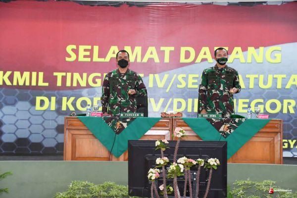 Pangdam IV/Diponegoro Mayjen TNI Rudianto membuka acara penerimaan Peserta On the Job Training (OJT) Taruna Akmil tingkat IV/Sermatutar TP 2020/2021 di Gedung Serba Guna Yonif 403/Wirasada Pratista. Latihan praktek OJT yang diikuti sebanyak 227 Taruna Akmil tersebut dilaksanakan secara tersebar di beberapa Satpur/Banpur dan Satkowil wilayah Kodam IV/Diponegoro. Senin (15/3/2021).