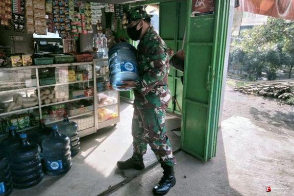 Kabupaten Semarang– Terlihat respek anggota Satgas TMMD kepada warga Dusun Sari Rejo saat penurunan belanjaan dan galon air minum yang ada d warung Ibu Yuni Minggu (14/03/2021).