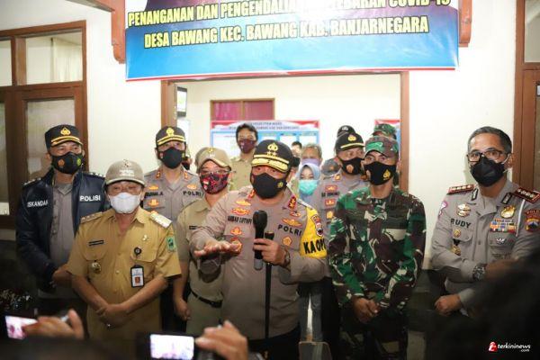 Kapolda Jateng Irjen Pol Drs Ahmad Luthfi SH, S.ST, MK melakukan pengecekan Posko PPKM Skala Mikro yang ada di Desa Bawang Kecamatan Bawang Banjarnegara, Selasa (16/3/2021).