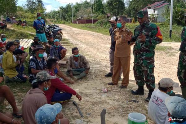 Pengkadan - Disela mengerjakan sasaran fisik dalam program TNI Manunggal Membangun Desa (TMMD) ke-110, Kodim 1206/PSB terus berbagi pengetahuan dan memberikan pemahaman tentang bahaya covid 19 kepada masyarakat di sekitar lokasi TMMD, Dusun Buak Trans,Desa Buak Limbang, Kecamatan Pengkadan. Minggu (14/03/2021).