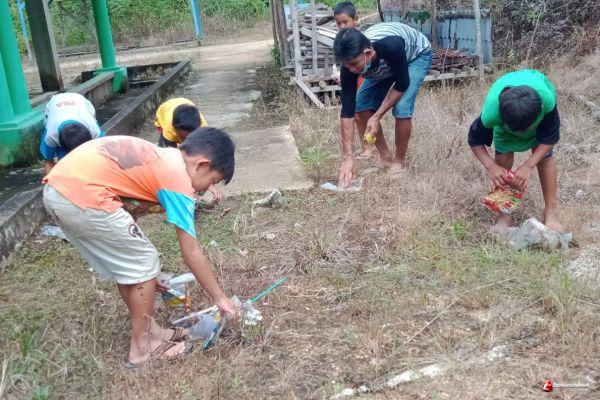 Anggota Satgas TMMD Serda Rifki beserta timnya kompak membersihkan lingkungan sekitar Lingkungan Masjid agar terlihat indah bersih dan rapi, anggota Satgas melaksanakan pembersihan dengan semangat,terlihat juga anak-anak sangat Antusias memungut sampah di seputaran masjid.