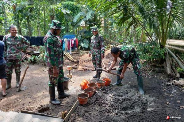 Kabupaten Semarang–Kekompakan membuat RLTH jelas terasa, dari mengaduk semen sampai pemasangan atap rumah, Satgas TNI Manunggal Membangun Desa (TMMD) Reguler ke- 110 Kodim 0714/Salatiga dengan warga Desa Ketapang tidak diragukan lagi.