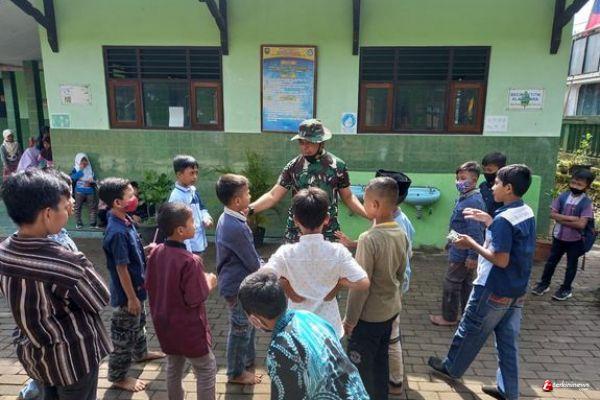 Serda Sutrisno, dengan sengaja mengajak bermain anak-anak karena saat ini sedang tidak berangkat ke sekolah karena adanya pandemi.