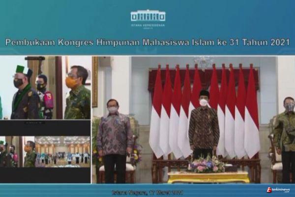 SURABAYA - Rangkaian Kongres Himpunan Mahasiswa Islam (HMI) ke-XXXI di Surabaya resmi dibuka, Rabu (17/3/2021). Kongres tersebut dibuka secara langsung oleh Presiden Joko Widodo (Jokowi) secara virtual.