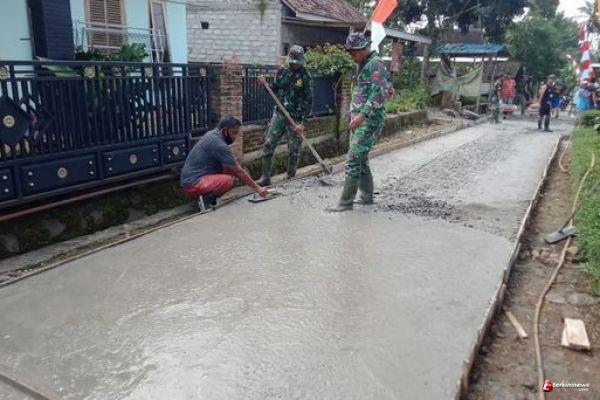 Kabupaten Semarang - Tetap semangat melanjutkan pekerjaan fisik pengecoran jalan, bahu membahu bekerja sama dan bergotong royong bersama program TMMD Reguler ke-110 Kodim 0714 Salatiga.