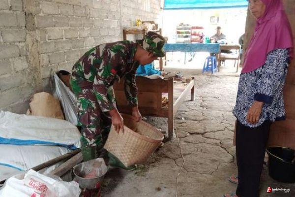 " Alhamdulillah sekali saya bisa dibantu oleh Bapak-bapak TNI yang sedang bertugas di desa saya,walau Bapak-bapak TNI sudah bekerja setiap hari mereka juga bisa membantu saya " tutur Ibu Siti.(15/03/2021)