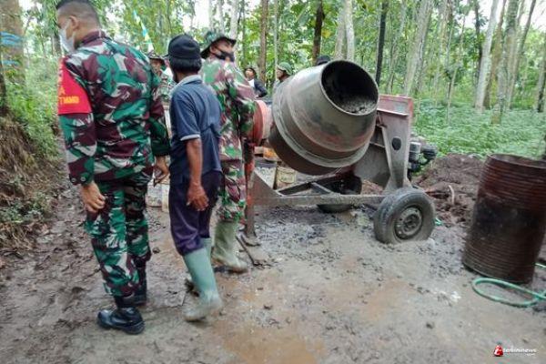Tak pernah luntur kebersamaan TNI bersama masyarakat Desa Ketapang Kecamatan Susukan Kabupaten Semarang, Bersama molen ,TNI dan warga setiap melaksanakan pekerjaan pengecoran jalan.