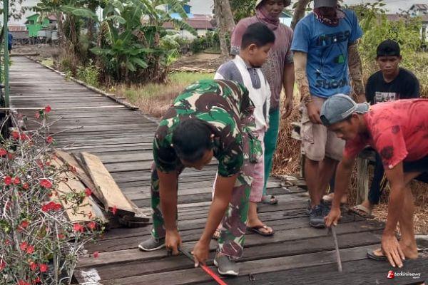 Pengkadan -Satgas TMMD -110 Putussibau ikut serta Perbaikan Jembatan, 15 Maret 2021 .