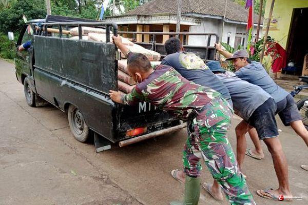 Adalah Kopda Muhamad Anggita, yang tengah sibuk bekerja di lokasi TMMD, tiba-tiba mengetahui ada mobil bak terbuka milik salah seorang warga yang macet dan mogok di tengah jalan, tanpa basa-basi segera membantu mendorong mobil yang mogok tersebut.