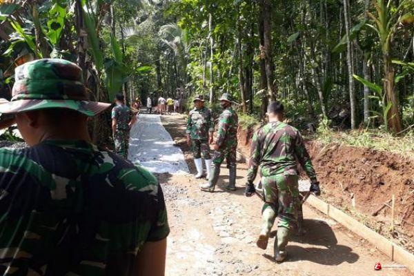 dengan penuh semangat anggota satgas TMMD membawa adukan semen dan matreal penunjang pengecoran dan juga tak kenal lelah berbaur bersama warga mengebut progam pengecoran jalan di desa ketapang kecamatan Susukan .