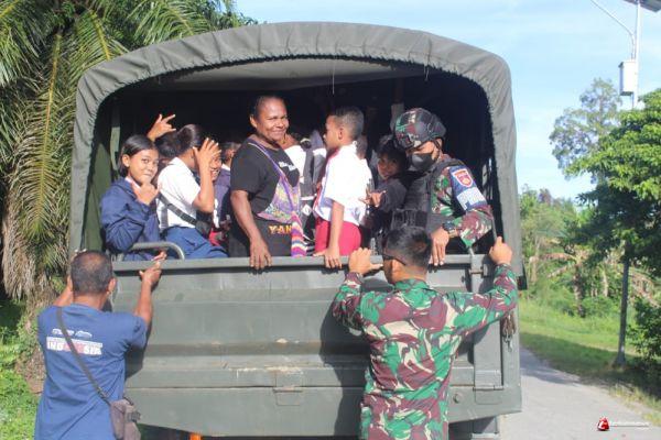 Masyarakat sangat antusias dengan kehadiran Satgas Pamtas Yonif 403/Wirasada Pratista dalam mendukung sarana transportasi kepada anak-anaknya untuk menuju ke sekolah.