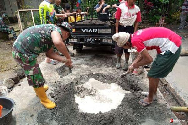 TNI Dan Warga Kompak Bikin Adukan Semen